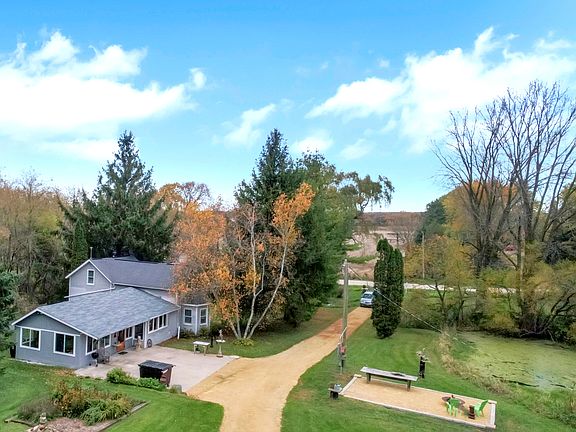 10-acres with house, patio, hay field, creek, pond, woods & landscape full of great variety of mature trees. Rural and secluded, but conveniently located. Cottage-chic two-story farmhouse with original wood floors, ceiling beams, & fireplace - 8 rooms. Claw-foot tub in bay window. Separate octagonal shop/garage with electric heat, woodstove, and generous electrical. Historic timber frame barn has new roof, but needs other work. Low taxes. Great place for horses, farming, gardening, commuting to Rockford, near Chicago suburbs, or a weekend get-away from the Big City. 5 minutes to shopping & the Metra station into Chicago. 10 minutes to restaurants, art galleries, and historic Woodstock Square.