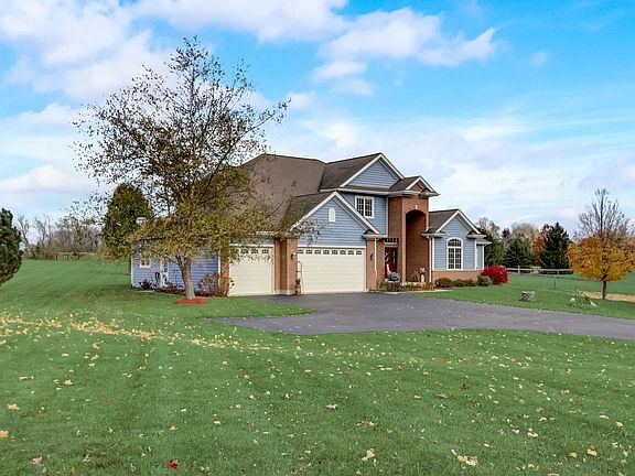 Just in time for the Holidays!! Country living on 2.34 acres of landscaped property (Zoned E5CV). Open floor-plan with 3-bedroom 2.5-bath. First floor suite with custom shower. Hardwood & Carpet. 3 car oversized garage with basement access. Horses/Equestrian and structure allowed. No HOA or HOA restrictions.