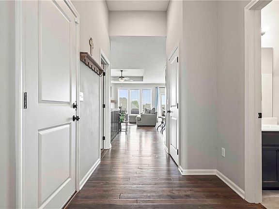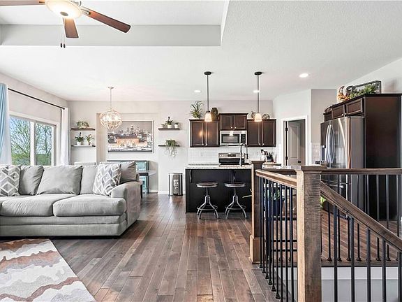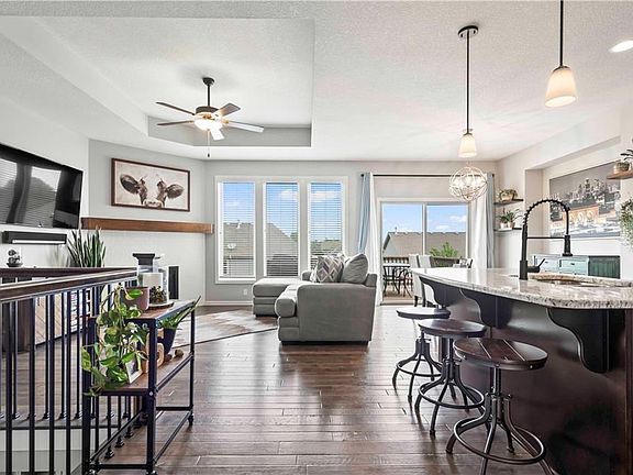 RARE FIND!! ABSOLUTELY STUNNING REVERSE HOME IN THE HIGHLY DESIRABLE DE SOTO SCHOOL DISTRICT! This stunning property offers the perfect blend of luxury and convenience, providing you with a lifestyle of comfort and ease. Gorgeous wood floors throughout the main living areas. Open floor plan with Great Room, Kitchen and Dining flowing seamlessly. Tray vaulted Great Room with fireplace for those cozy nights in. Kitchen that is sure to please the chef with eat-in bar, granite countertops, stainless steel appliances and walk-in pantry! Deck off dining area-perfect for BBQ's! Spacious primary suite including en-suite bathroom with dual vanity, walk-in shower and walk-in closet conveniently adjacent to laundry room! 2nd bedroom and full bath complete the main. Full finished walk-out basement with Family Room, Rec Room or Flex Room, 3rd Bedroom and 3rd Full Bath! Many ways to enjoy the outdoors from the deck or patio in the fenced backyard. Great location close to dining, shopping, parks and major highways! HURRY IN!!