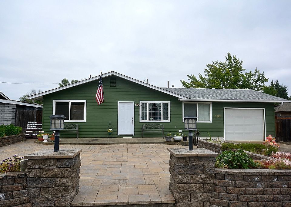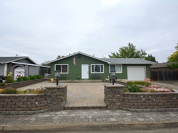 Nicely maintained home in quiet cul-de-sac in Green. This is a must see. Beautiful front courtyard and lots of off street parking. Large backyard that is fully fenced and private. Includes a garden area with raised beds and a greenhouse. Secure 14'x 45' (approx) parking for RV or your toys behind gate. Additional features include, hardwood floors, a pellet stove, sunroom, dog kennel, shed, and an extra deep one car garage with half bath. Lots of updates and ready to move in today.