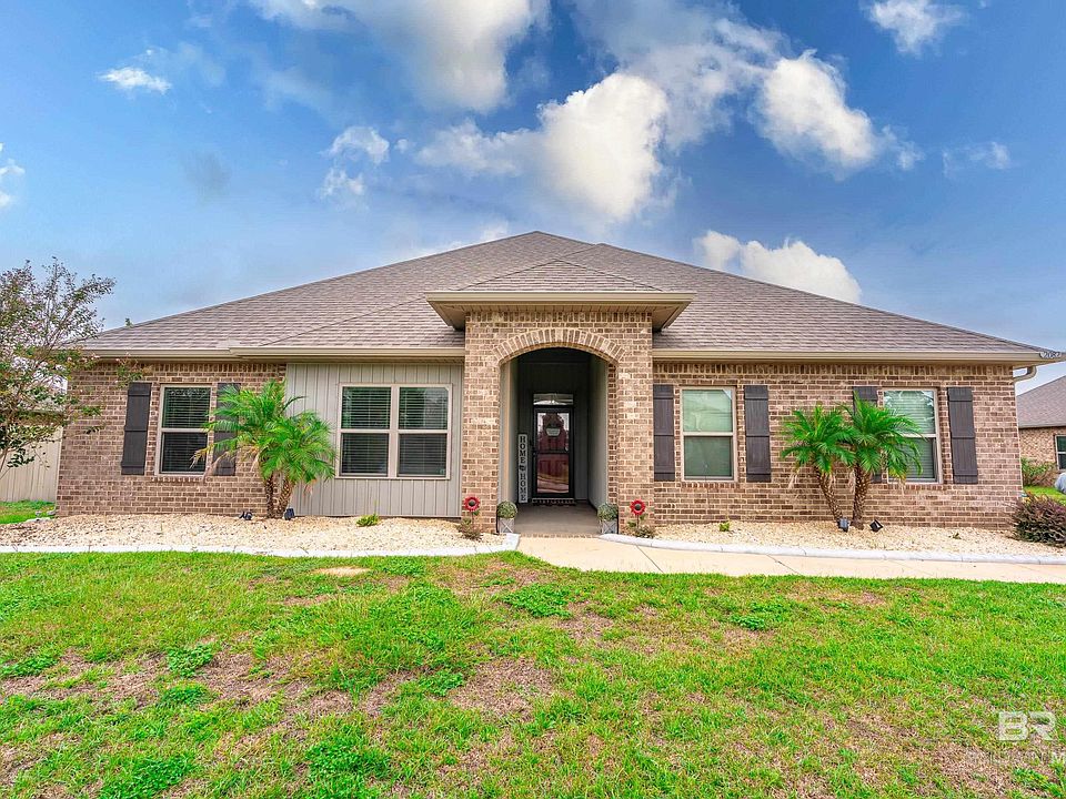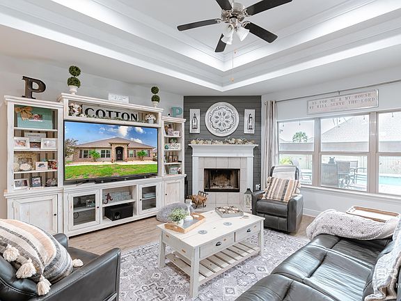 NEW FORTIFIED ROOF BEING INSTALLED! Unlike the others! Don't miss out! This stunning, brick home features a desirable split floor plan complimented by elegant 11 foot tall trey ceilings that create an open and spacious feel. The living room has a wood burning fireplace and shiplap walls. The home has neutral paint colors and vinyl flooring throughout. The primary bedroom is oversized with trey ceilings and an oversized closet.The kitchen is the centerpiece of the home, being open and flowing into both the living space and the attached dining area. All of the counters in both the kitchen and baths are stone. An island bar creates seating for entertaining while cooking. With stainless steel appliances, white cabinets and a tile backsplash it is picture perfect! The living room is large and features a wood burning fireplace and shiplapped walls.The backyard is a total Oasis! With an inground, gunite pool that features an ozone filter that makes it a breeze to keep serviced and can be done in minutes. This space is perfect for relaxing with a covered bar and seating area. If you want more space, a detached building offers a bonus room that can be used as a music studio, hangout space or office!Just a few of the other features are a large laundry room, a side entry two car garage and a plethora of storage options. This neighborhood has a great proximity to everything you are looking for. The sellers even watch the fireworks at Owa from their back patio during the holidays! Minutes from the Outlets and other shopping, restaurants and the beach. Call to see it today! Buyer to verify all information during due diligence.