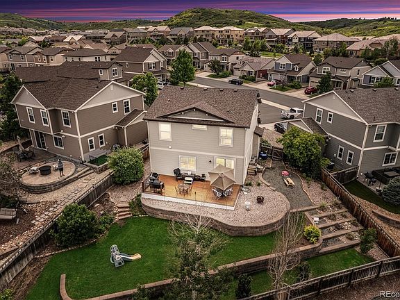 Welcome home to this updated two-story home on a large premium lot on a quiet cul-de-sac in The Meadows. This light and bright south-facing home boasts laminate hardwood floors, newer interior paint throughout and an open floorplan, ideal for entertaining. The inviting kitchen features ample cherry cabinetry, a stainless steel appliance package and breakfast bar. Step out the large glass slider to a spacious composite deck overlooking a tiered backyard with stone retaining walls, mature trees and raspberry bushes. Retreat to your upstairs primary suite, complete with a walk-in closet and ensuite 5-piece bath. Two secondary bedrooms and a full bath round out the upper floor. This home is ideally situated within walking distance to neighborhood Douglas County schools, multiple parks, outdoor pool, tennis courts & community clubhouse. Moments from downtown Castle Rock, shopping, dining and easy highway access, this home has it all. Do not miss your opportunity to tour 2082 Coach House Loop today! Click link below for video and 3d tour access.