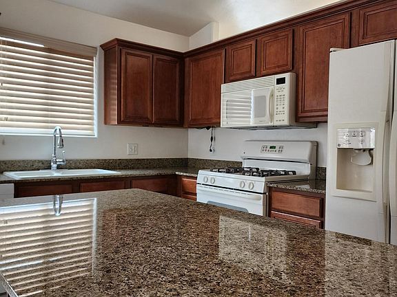 Location! Wonderful westerly views from this great sized lot! One of the best floor plans in the area providing split floor plans, front living and dining room area and a large family room open to the kitchen and island for all of your entertaining. The completely covered patio leads to the oversized fenced yard and separate block patio. Fresh new paint inside and out making this ready just for you! Renter is responsible for all utilities.
