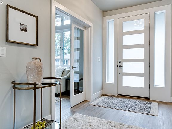 Welcome to this exquisite luxury home, crafted with precision by Heitman Custom Homes, and nestled in a serene, secluded neighborhood in East Eugene. This property is situated on the last elevated corner lot in the neighborhood, providing easy ingress and egress during snowy and icy conditions. This residence seamlessly blends modern elegance with timeless charm. Step inside to discover a thoughtfully designed interior with classic finishes throughout. The primary bedroom is a private retreat on the main level, offering convenience and tranquility. The master bathroom is beautifully tiled with floor to ceiling marble and connected to a large walk-in closet. Upstairs, you'll find three additional bedrooms and a spacious bonus room. The home boasts a professionally landscaped large yard, ideal for outdoor enjoyment and furry friends. Highlights include a covered porch, gas line for grilling, and fully fenced private backyard. Modern amenities include a Ring doorbell, and designer lighting, ensuring both style and security. Additional features include a two-car garage with a dedicated workout nook. Access to the Ridgeline Trail System and Hendricks Park is steps away from the front door. The home is also within short distance to the University of Oregon. A true blend of luxury and practicality, this home offers a unique living experience in a coveted location.
