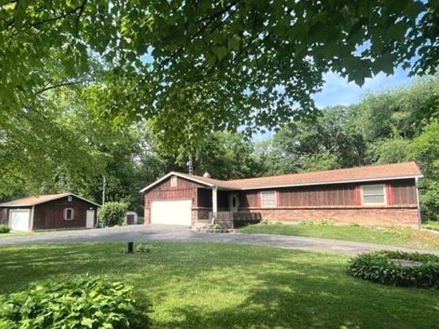 Just minutes from town, perennial filled .83 acre ,one owner home has 3 bedrooms, master bedroom has walk in closet and 1/2 bath, 2 car attached garage and a detached 2 1/2 car garage,