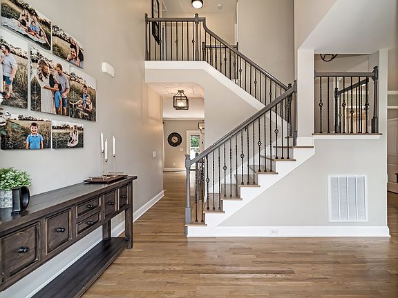 The Gregory floorplan by John Maher features an open floorplan, two story foyer, separate dining room, a cook’s kitchen overlooking the breakfast room and open to the private great room. The owners have turned their primary suite bathroom into luxury space including a glass enclosed shower, separate tub and an updated double vanity. The updated trim package throughout the home, masterfully remodeled bathrooms and designer bedrooms complete the home’s remodel. Private fenced backyard overlooks common area with treeline. Upgraded oversized deck featuring composite framing. The 2 car garage with tandem workshop and an abundance of storage space.