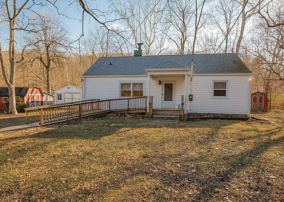 IF YOU WANT NO SUBDIVISION, THIS HOME IS FOR YOU! County Setting! Only 3 homes on this street! This setting does not come along often. PRICED ACCORDINGLY - WORK TO BE DONE-Mostly cosmetics/ Could be 4 bedroom/ Perfect setup currently of 3 bedroom with an office/Detached 1 car oversized garage/2 sheds/Road frontage is 160 ft/ 2 fieldstone fireplaces/ Deck/ All appliances stay including Speed Queen washer and dryer / NO CITY TAXES! Overlooks Fowler Creek/ Only 3.5 miles off the expressway, 1/4 mile from Independence, and 1/8 mile from Erlanger