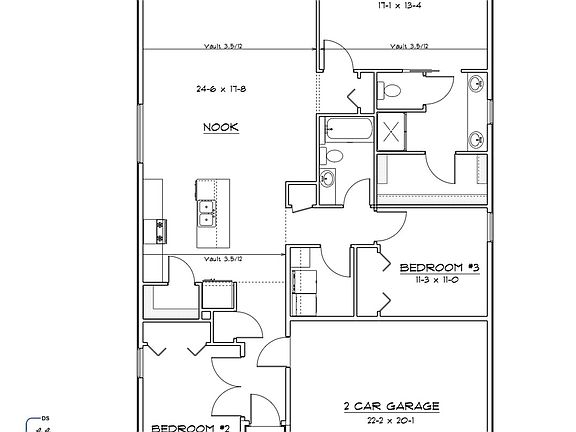 Affordable green living in Eden Gleann, a Fowler Home 55+ Community in Dallas Oregon. Kitchen looking out to Vaulted Nook & Great room then on to the covered outdoor living space. The Master is at the back of the home, private & away from the other 2 bedrooms. Optional use of front bedroom as flex space/office with French door entrance and closet/storage space.