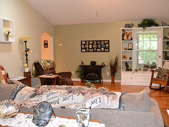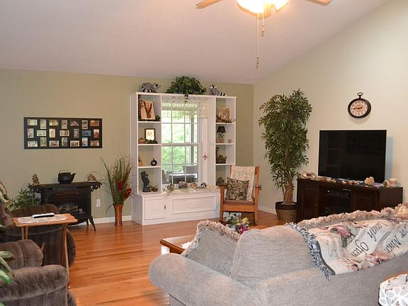 Beautifully maintained home and grounds with 3BR/2BA, split bedroom plan, custom cabinetry, solid surface countertops, vaulted ceiling in 25' LR, formal dining room, sunroom and screened porch on 1.59 acres with pond. Two outbuildings, three tunnel lights, water filter, RV pad and hookup, and smoker shed. New water heater 2016