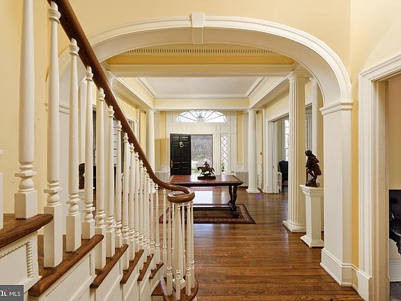 Exquisite!!! As one enters the Estate of Delaplane Manor, one crosses the picturesque stone bridge over Crooked Run before passing through the gated entry. The drive then gently curves as it ascends to the front portico of the home. Built for Channing Delaplane, Jr. in 1921, the manor house with its exquisite symmetry is beautifully sited on its 75 acres. Located within the Crooked Run Valley Rural Historic District, the home is a handsome example of the early twentieth century Colonial Revival style. Delaplane Manor is a magnificent home for entertaining, the front portico provides an elegant entry into the grand foyer, with its 11’ ceiling height and beautiful molding. The foyer opens to the left into the 30’ x 17’ living room and to the right into the 30’ x 17’ banquet sized dining room, each with a fireplace and wonderful natural light. In addition, the main level features a den, a half bath and a separate shower room, kitchen with breakfast room and a large pantry, and at each end of the home and to the back there are three season sunrooms. The sunroom at the back opens out to a large terrace and swimming pool. The second level of the home features 5 bedrooms, 3 full baths, sitting room, library, and kitchenette. The third level features 2 spacious bedrooms at each end of the hallway with private baths and 3 additional rooms and a hall bath. The lower level is unfinished and offers a half-bath, equipment rooms and wonderful space for a game room, a home theater, and storage. The land sits high with elevations ranging from 550'-770' and is gently rolling with beautiful open fields to each side of the home. To the back of the manor house are barns and paddocks, and beyond them are mature woodlands. Within the property’s boundary is a 2 story frame home, which is not currently habitable and is being sold “As Is”. Delaplane Manor has recorded covenants which can be found in the Documents section of the listing. The following historic and architectural details regarding Delaplane Manor were furnished by Maral S. Kalbian, Architectural Historian & Preservation Consultant. Built for Channing Delaplane, Jr. in 1921 it’s located on land formerly a part of James Ball's large eighteenth century land grant, it was built near the site of the Summerset Mill, which was constructed for Hezekiah Turner in 1779 and burned in 1894. Delaplane used stones from the mill for the foundation of this dwelling. The house is a handsome example of the early twentieth century Colonial Revival style. The two-and-a-half-story, seven-bay, brick Colonial Revival-style dwelling is covered by a side-facing gable roof with brick parapet end walls and arched dormers on the east side. Brick chimneys are located at the north and south ends of the house. A double-height, three-bay entrance porch is located on the east side of the house. The centrally located entrance, which has an elliptical fanlight, is flanked on each side by three 12 over 12 wood sash windows. This property is in Land Use. Seller will not be responsible for Roll-back Taxes if Purchaser removes any portion of the Property from Land Use. A/C sold in "as is" condition. Delaplane Manor is located within prime Virginia horse and wine country, minutes from Middleburg, Upperville, Marshall and Warrenton. The location is convenient to both Interstate 66 and Route 50 and fronts on Winchester Road/Rt. 17 between Interstate 66 and Paris.