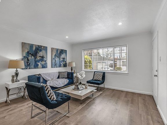 Welcome to this charming house. The interior of this modern home is repainted a simple white with grey accents. Floors throughout redone in high quality waterproof laminate in grey sterling oak. Updated kitchen with stainless steel appliances. Beautiful remodeled bathroom. Garage converted into a living space either for a bedroom or bonus room with an added sink. Above the garage there is a spacious storage loft. With the added bonus room, the house is a roomy 3 bedroom 1 bath. This home is a commuter's dream. Centrally located to BART, 880, 580 and 238 highway. Walking distance to shops, restaurants, parks, banks etc.