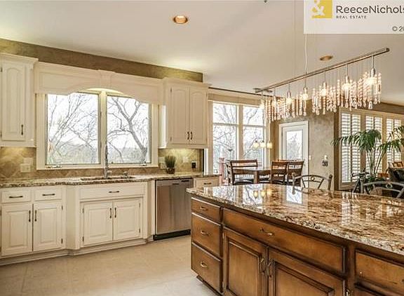 Private Treed Lot. Gorgeous lake view. Amazing Kitchen & Master Suite. Enjoy the Falcon Ridge lifestyle, private lot w/trail access to Lake Lenexa. Stunning views & natural light. Chef's kitchen, w/large kitchen island & tons of counter & cabinet space. Open concept, plus spaces for gathering & entertaining throughout. Luxurious master suite recently renovated, Jacuzzi tub & walkin shower. Wait till you see the massive walk in closet! The $70k Lower level finishes, walks out to 2nd deck for relaxing.