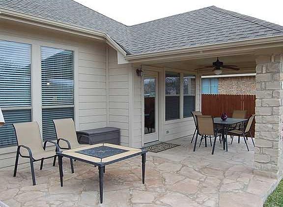 Beautiful home in The Commons. One story, with three bedrooms, formal dining and office area (could be 4th bedroom). Gas cooktop in kitchen with breakfast area, open to the living room. Living room has fireplace. Nice back patio for entertaining.