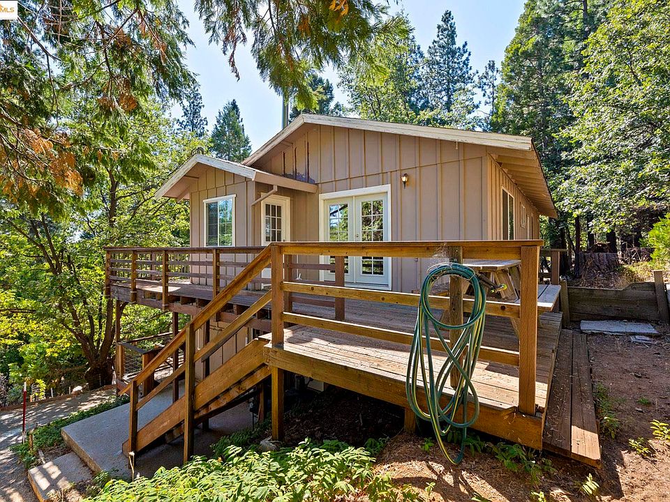 Welcome to Mi Wuk! This 3 bedroom 2 bath 1556 square foot home is full of potential. The friendly lay out could be used in many different ways. With two of the bedrooms being on the lower level of the home there is potential for kids rooms, guest rooms, play room, game room and many other ideas. There is a full bathroom downstairs as well. The lower level also features French Doors to the lower deck area and fenced in planter boxes. On the entry level of the home you'll meet the kitchen as you first walk in which leads to the open dining space and large living room. The living room features an open fire place creating a cozy atmosphere. There are two sets of French Doors leading to the deck spaces on the entry level. One from the upstairs bedroom and one from the living area. This house has great flow and is just calling for your individual touch!