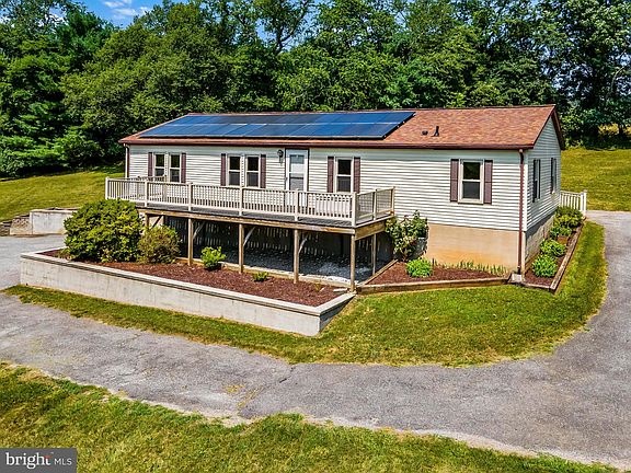 From Millers Mill Road, emerge from the tree canopy and follow the driveway past the first field, over the stream and up the hill to discover this quaint 1986 modular build. Enter through the garage into the finished lower level or come in through the kitchen off of the back deck. The main level, well lit and open with hardwood floors throughout. The kitchen has sight lines to the dining area as well as the den. A living room with fireplace sits off of two bedrooms and the shared full bath. A generous primary suite enjoys sunlight from its corner position. The lower level, fully finished with a large private room as well as space for more living. A full bath and wet-bar will serve your guests well. A mud room off the garage also has room for storage. The L-Shape of the garage leaves options for covered parking and additional storage. Solar Panels are owned with transferable energy management program.