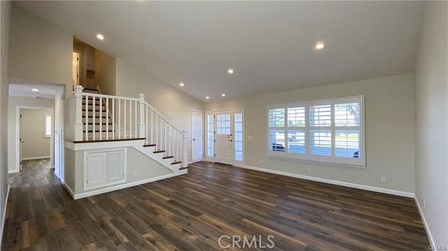 Stunning South Huntington Home with 2 stories, 4 Bedrooms. 1 main level bedroom and bathroom. Main suite is upstairs along with 2 additional bedrooms and 3rd bathroom. Hard wood floors, solid surface floors through out (no carpet!). Skylights, Dual pane windows, plantation shutters, recess lighting, everything is new/replaced, remodeled. Cement slab to roof and everything in between. New electrical, plumbing, tankless water heater, epoxy garage flooring, new windows, doors, closet doors, shower doors through out. Kitchen includes stainless steel gas stove, built in microwave, refrigerator with water and ice in the door, dishwasher, trash sorter for recycling, large single basin sink overlooking the private backyard. Dutch door entry. Front porch with cafe lights perfect for entertaining and watching sunsets. Property backs to (plants) Nursery and further off behind the home is the bike path river trail that goes from the beach to Anaheim and beyond. Includes landscape service for front and back yards.