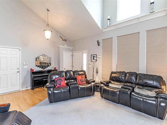 This spacious 5-bedroom, 3-bathroom home in the sought-after Highland Crest neighborhood offers a practical and inviting layout for modern living. The open floor plan features hardwood floors, abundant natural light from large windows, and high ceilings, creating a bright and airy atmosphere. A versatile guest bedroom with French doors doubles as a large private home office, ideal for remote work or study. The home includes two fireplaces—one in the living room and one in the family room—for added comfort and warmth. Recent upgrades include upgraded HVAC, roof, double steel and insulated garage doors, storm doors, Missouri River rock driveway (with transferable warranty) and DuraLast exterior and interior paint, ensuring low maintenance for years to come. Step outside to a 14 x 14 maintenance-free Trex deck overlooking a well-maintained yard with a tree-lined berm, backing to greenspace and a walking trail.