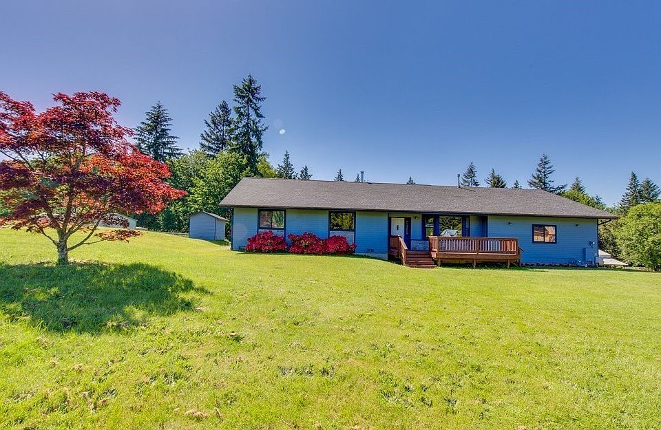 Single level home w/open floor plan & vaulted ceiling-move in ready. Nestled in old farmland, home is perfectly located & minutes from downtown Poulsbo. 1.2 acres of open sunny property w/mature fruit trees & garden space. Sunroom opens to large back decks. Large updated kitchen w/gas stove and SS appliances. Large 2 car garage w/shop or storage area on the side & lg detached shop or additionl garage space. Concrete parking pad on the side of the lower shop with electrical hook up for your RV.