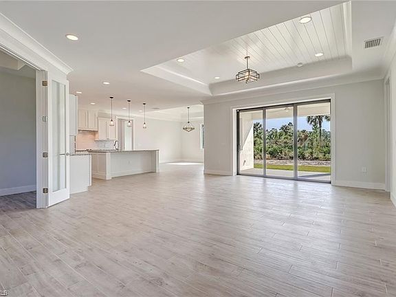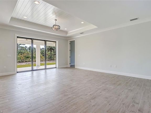 GORGEOUS HOME WITH LOADS OF UPGRADES and situated on a LARGE 2.73 ACRE LOT. This 3 Br+den, 2.5 bath home has an Expansive floor plan. Stunning Ultra Modern Kitchen with Custom cabinets, granite counter tops, tile backsplash, Stainless Steel appliances with cook top, wall oven and built-in microwave. Large island with breakfast bar offering plenty of cooking space for the family chef and all opening up to the formal dining area and Family room. Boasting Attractive wood plank tile flooring throughout, tray ceilings with tongue & groove. Crown Molding. Master bedroom closets have modern Farmhouse-Style Barn Doors that lead into a large master bath with dual sinks, granite counters, soaking tub and frameless shower enclosure! Pocket sliders lead out to Oversized Lanai. Additional features are Irritation system, camera pre-wiring. NO HOA fees to worry about. Located close to the New Publix Shopping Center. Picture are of a previously constructed home of the same floor plan and are a representation of the finishes being offered in this house but will not be exact.