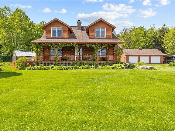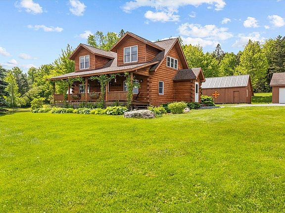 This charming log cabin is located in Wolcott's "Gold Coast" and offers an idyllic Vermont retreat. Situated on over 10 acres of picturesque land, the property boasts stunning views, a large swimming pond, and an expansive covered porch that invites you to savor the tranquil surroundings. This inviting log cabin offers seamlessly connected living areas and enhances the sense of space. Inside, a wood-burning stove provides warmth and a cozy ambiance during the colder months, while the conveniently located dining area off the kitchen is perfect for family meals and gatherings. The second level features two well-appointed bedrooms with windows that let in abundant natural light, along with a shared bath. Additionally, the first floor includes a guest room and a full bath, providing comfortable accommodations for visitors. Outside, the large swimming pond is perfect for refreshing summer swims or serene winter skating, and the beautiful lawn offers manicured green space for outdoor activities and gardening. The property also includes a detached 3-car garage, providing ample space for vehicles, storage, and workshop needs, as well as a shed and greenhouse for additional storage and year-round plant cultivation. This Vermont oasis is an ideal home for those seeking a peaceful and self-sustained lifestyle. Whether you’re looking to escape the hustle and bustle or simply enjoy the natural beauty of Vermont, 2083 Elmore Pond Road offers a unique and captivating living experience.