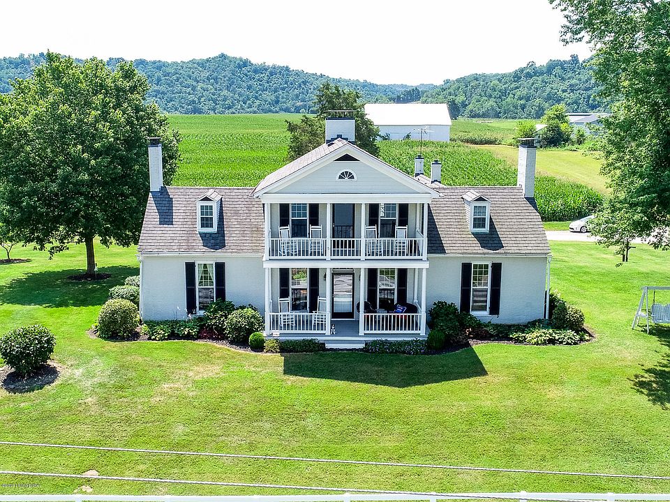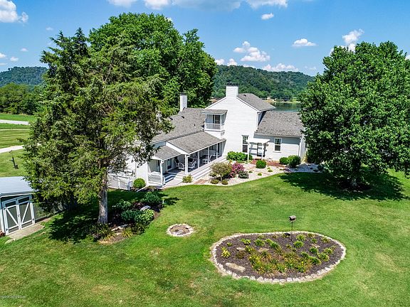 River living at it's finest just minutes from charming Madison, IN. Come experience this historic 3 BR, 2 ½ bath home with exquisite details throughout! This is nothing but tasteful, country elegance and can be purchased fully furnished. Five fireplaces with ornate mantels, tall ceilings, wide plank, wooden floors and plantation shutters are just a few of the things that give this home such charm. The home has been meticulously cared for and has views from every room. Upper and lower level porches have Trex decking and there is an unfinished basement with original stone walls . Over 3 acres of lush grounds and flower beds, this property also has a concrete boat ramp, shared dock, 30 x 50' storage building with water and electric and tractor shed.