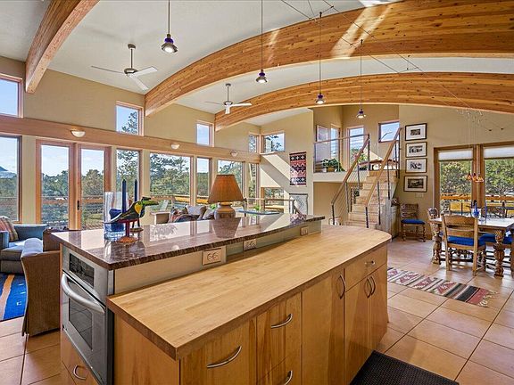 Spectacular is the only way to describe this contemporary masterpiece sitting on 9.3 acres adjacent to the ever desirable Log Hill Village. Patios, decks and huge windows take full advantage of the panoramic views of both the Cimarrons and San Juans. The main floor features an extremely well designed open floorplan that includes the great room, dining room, and, the heart of the home, the kitchen. Rung with windows on the south and west, the natural light in this space is remarkable. The curved beams in the great room are architecturally unique and add an incredible dimension to this wonderful space. A loft overlooking the Great Room is a fabulously quiet retreat. The Master suite takes full advantage of the views to the south, east and west.