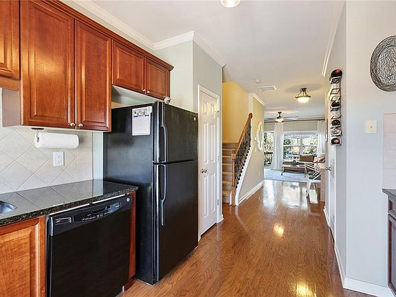 The view of the Buckhead skyline will take your breath away each night. Enjoy walking to restaurants and shopping from your very own gated townhome community in a popular Upper Westside Atlanta. Plenty of room to work from home. Features quiet and only cul-de-sac in community, private wooded backyard, and close to the pool. You will love this one!