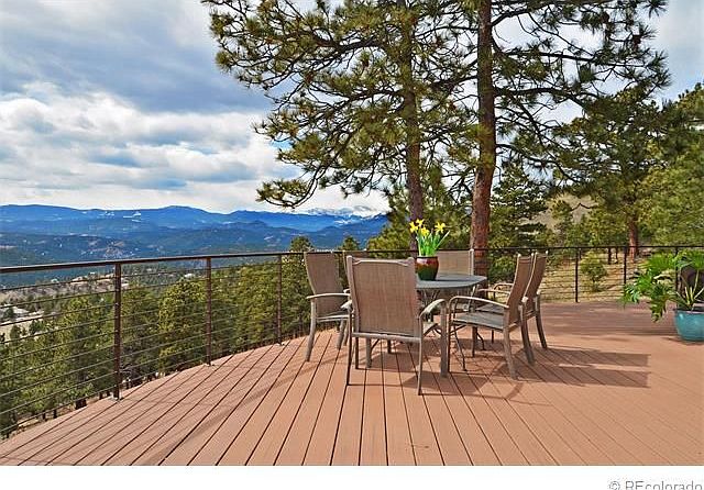 Panoramic Mountain Views of Mt. Evans, Bear Creek plus enjoy the twinkling lights of Evergreen at night. Great room with awesome views, vaulted ceilings, fireplace & access to wrap around deck. Dining room is perfectly positioned for easy entertaining & a direct view of Mt. Evans. The chef in the family will love the kitchen with great light, white cap views & expansive granite counters. The sitting room is flanked with a huge picture window framing Mt. Evans & a door to the deck to enjoy the fresh Colorado air. The master is amazing with jaw dropping views of Mt. Evans & a spa like master bath. The upper level also offers 2 more bedrooms, each with their own private bath. Wonderful lower level family room. Large 3 car garage. Newer Roof, Deck & Hard Coat Stucco. Genesee, you can be in downtown Denver in less than 25 minutes & in Summit County in less than an hour. Genesee also offers 11 miles of hiking trails, 1200 acres of open space, 2 pools, 4 tennis courts & award-winning schools.