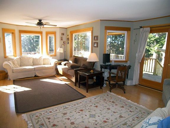 Gracious NW country home on private 5+ acres of meadow & woods with partial water views. Designed for indoor-outdoor living w/ many doors leading to 1400 sf of covered porches and large, west-facing deck. Special features include: lavish use of hardwoods in trim, cabinets & doors, large family-style kitchen & lovely new master suite. Located at end of private road in great neighborhood, not far from ferry dock.
