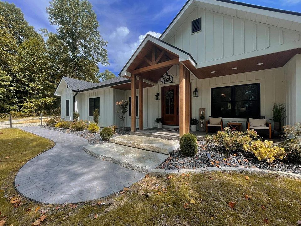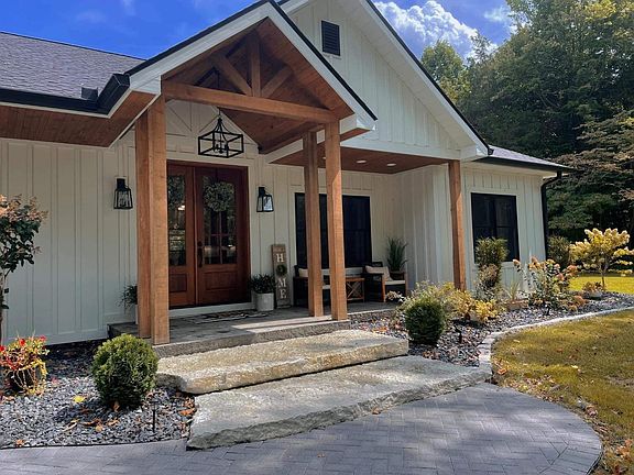 Fall in love w/ this gorgeous new farmhouse on 3 acres built in 2021. Conveniently located between Dillsboro & Versailles. Offering everything there is to love about a modern farmhouse, this home features- stamped concrete, extreme landscaping, beautiful double entry doors, large Anderson windows for natural light, hardwood floors, farmhouse sink, quartz counter tops, s/s appliances, large soaking tub, tiled walk-in shower, spacious walk in closet, large open family room & play room in basement w/ the possibility of more bedrooms or office space. Secluded setting on a dead end rd, enjoy the covered back porch all year around, stocked pond, matching tree/play house in the back yard, 2 car attached garage, & large 30'x 50'x 10' pole barn w/ concrete. Sump pump in basement, tankless hot water heater, spray foam insulation, acid stained concrete floors in basement, Hardie board exterior, 1/2 basket ball court, Aprox 25 mins to 74, 30 mins to 275, 40 mins to CVG airport.motivated seller!