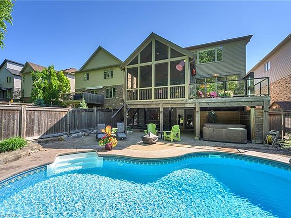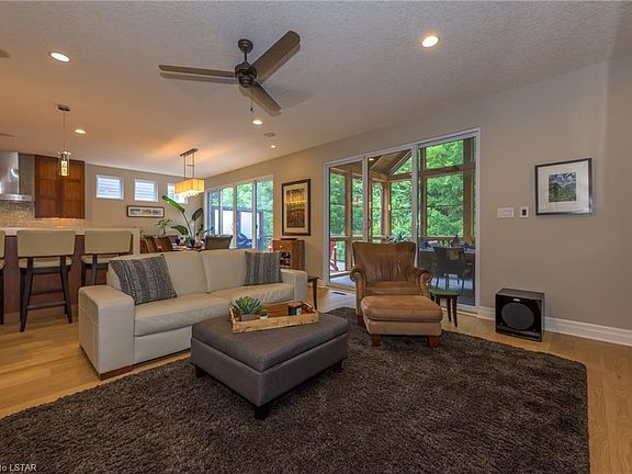 This beautiful two storey home showcases a stunning pool oasis backing onto the forest, an incredible Muskoka room, custom designer kitchen w/ walnut cabinetry, finished lower level walk out w/guest suite & more! New hardwood June 2020. Fresh neutral paint throughout. Custom Kitchen features built in appliances, quartz surfaces, fabulous breakfast bar & walk-in pantry. Open concept floor plan allows seating area overlooking the lush forest backdrop, salt water pool w/ water feature, two-level patio and beautiful landscaping. Living room features gas fireplace & floor-to-ceiling stone surround. Off the living area is a spectacular pine timber-framed and screened-in Muskoka room w/ cathedral ceiling for " outdoor" dining on warm nights! Second level features a big loft retreat and three spacious bedrooms. Master features tray ceiling, walk-in closet, & 4pc ensuite w/heated floors, spa shower. Walk-out lower offers guest suite! Welcome home to your amazing North London staycation.