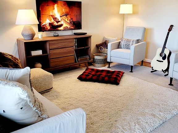 Location! Location! Bright and private corner 2 bed/2 bath mountain getaway in exclusive Stone Ridge at Wintergreen Resort! Walk next door to the Spa and Aquatics Center to enjoy the sauna, fitness center, and heated indoor pool or walk to the Nature Foundation and access walking trails just across the street. Quick acces to the Devils Knob Complex. This well-appointed condo is set back from the parking lot with easy access and only a few stairs to the front door. It was also completely rebuilt in 2004. This ski-to-summer mountain getaway also has a new whole house water filter (2023), fridge, washer/dryer (2023), new disposal (2023), and the entire condo interior has been painted (2023), there is an (almost completed) updated kitchen, with all new dimmable fixtures in the kitchen, dining and baths, and brand-new furnishings curated specifically for this space. There is also a wood burning fireplace and firewood is included and supplied just outside your door. Come for the fun and snowboard and ski or enjoy being nestled in the green trees during the cool, mountain top summers. Leave your windows open and sit a spell on your deck to watch the sun go down and the bunnies come out to play!