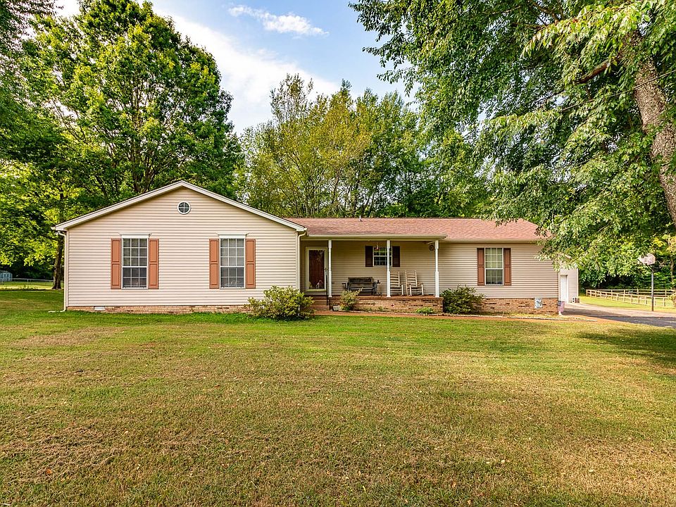 Perfect country setting with tree-filled 1.63 acre lot! Your new 1-level home offers gorgeous hardwood flooring, fresh paint, extra-large family room w/fireplace and vaulted ceiling, 3 large bedrooms, with a spacious detached 30 X 36 garage w work area plus 2 storage bldgs, Plus, there's a 2-car attached garage! Extra-large deck, bay window, all appliances in house stay! Intermittent CREEK in back! Culleoka schools.