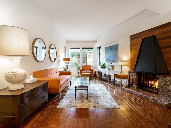 This immaculate bright , spacious home, boasts beautiful renos including : new kitchen, bathroom with new appliances. Open concept living and exceptional finishing interior, featuring high ceilings, white kitchen, and quartz counters. Step onto the patio from the master bedroom for a morning coffee. Entertain in the spacious living area with wood burning fire place as the centrepiece. Spectacular layout. Self managed and cared for 12 suite boutique strata, pets and rentals allowed. Walking distance to fitness, Skytrain ( under construction), cafes, coffee shops and dining.