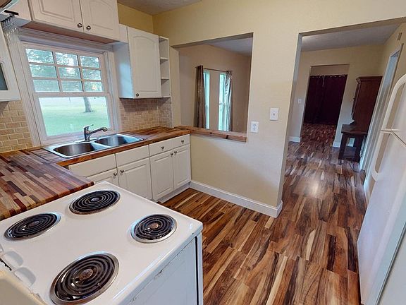 Oh My, Little Cottage just outside of town! 3 bedroom and 1 spacious bath home with little over an acre lot. Nice storage building workshop. Beautiful home with lots of remodeling already complete. Beautiful wood floors and kitchen is a doll with wood countertops and nice backsplash.