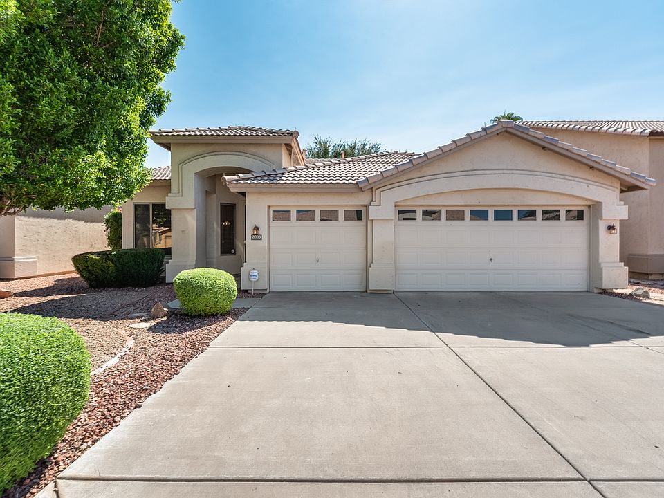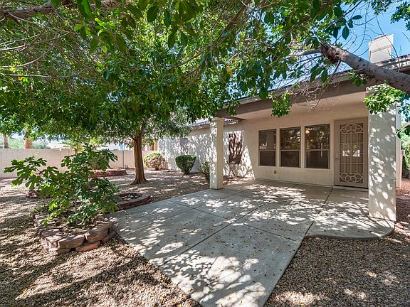 Step inside of this captivating 3 bedroom, 2 bathroom home in the popular Capriana community of Chandler! The interior of this home offers amazing amenities like high ceilings, beautiful flooring, and two living areas. In the kitchen, you'll enjoy tons of cabinet space and a tall breakfast bar for easy serving. The spacious primary bedroom boasts a walk-in closet and an en suite bathroom with double vanity sinks, a soaking tub, and a walk-in shower. The backyard is sure to steal your heart with it's covered patio and mature landscaping. This must-see home is near schools, restaurants, shopping, and more!