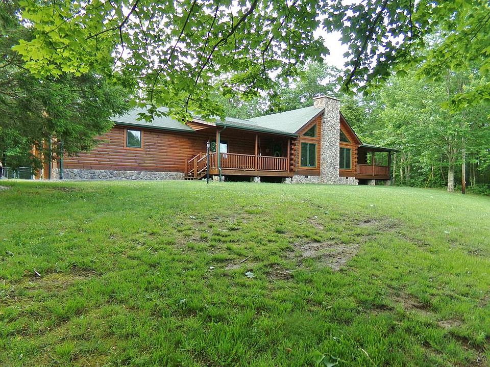 Have you wanted a beautiful log home? Gosh...this is it! Gorgeous Log Home sitting on 5.42 acres overlooking a pond with fish. Heat Pump for heating and cooling with fireplace with insert. The custom hickory cabinetry and granite counter tops, walnut wood floors, carpet in bedrooms, tile in kitchen, baths and dining area. Large deck in back of house with level yard and 2 covered deck in front. Door and window frames in knotty pine. Large 12 X 36 storage in back. Reduced. Motivated Seller!