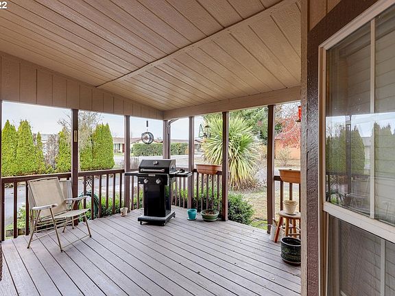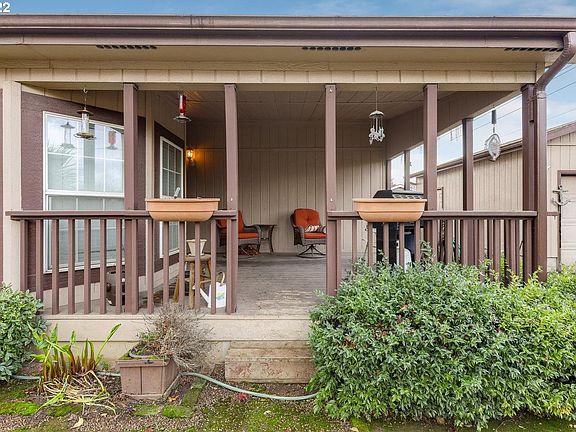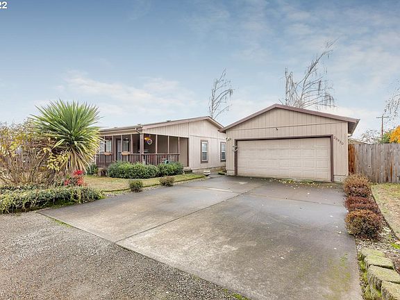 Great Donald Property! 1996 Triple Wide Manufactured home on huge rented lot with fenced back/side yard, 2 sheds, 2 car garage Home is very nice inside with 3 large bedrooms/spacious primary suite with large bath. Open floor plan features large livingroom, formal dining, familyroom and remodeled kitchen (2019) with white cabinets, island and granite. Spacious hall bath and utility/mud room that opens to backyard. Real hardwoods/laminate/carpet floors Covered front porch, deck/RV Parking