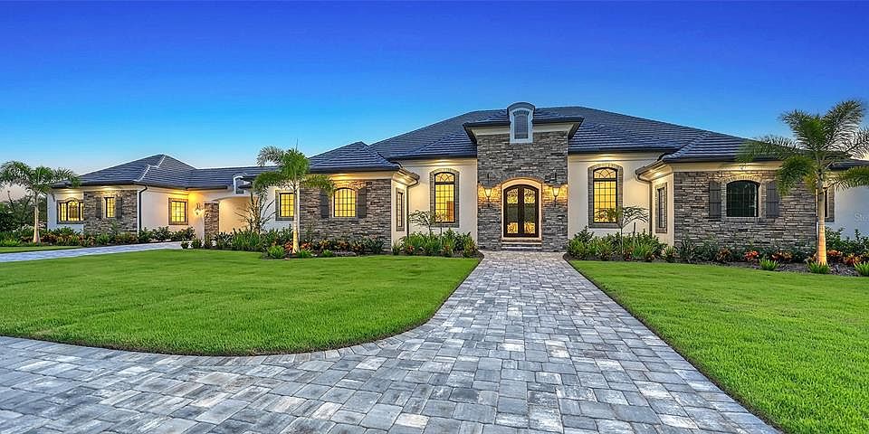 A one-of-a-kind experience awaits you at this brand-new custom home in The Concession. Beautifully landscaped and backing up to the preserve, this corner property sits on 1.54 acres of luxurious privacy. No detail was missed at this impressive estate offering five bedrooms and six and a half bathrooms. Inside the single-story 8,377sf residence, the contemporary interior is stylishly adorned with beautiful hardwood and tile flooring, plus upgraded Andersen impact glass doors and windows that enhance this home’s stunning architecture. You will love the over-the-top Smart Home Technology complete with Control4 capabilities, several wall-mounted televisions, sound system, and wiring for security cameras. The sellers spared no expense for peace of mind in upgrading to a gas instant hot water heater, four Trane XV18 high efficiency AC systems with upgraded insulation, two Honeywell whole house dehumidifiers, central alarm system, surge suppressor, central vacuum system, two 30amp outlets for Electric Vehicle charging capabilities, and a whole house generator. The gourmet kitchen provides the finest in function and design including a 48" Sub-Zero refrigerator, Wolf dual fuel range (gas burners topside and convection/electric ovens below), Wolf steam and microwave ovens, Sub-Zero ice maker, Bosch dishwasher, and a large walk-in food pantry. The Butler's Pantry is equally impressive with additional storage cabinets, Frigidaire freezer, and a Sub-Zero wine cooler. Along with the 4 en-suite bedrooms of the main house, the options are endless with the flexibility of several other rooms. Currently designed with his and her offices, a fitness room, and a bonus room there is certainly opportunity to utilize these spaces for a variety of other functions. The pièce de résistance of the home is the pottery studio. With ample cabinet storage and countertop space, epoxy flooring, a 240v electric outlet for high output equipment (such as a kiln), and plumbed with a hose bib and linear floor drain, this flex room with beautiful natural light is a potter's dream but could also be used as a workshop, craft room, doggy spa, or secondary laundry room. In addition to a three-car garage, there is no shortage of storage with a number of sizeable closets and three generous under-air storage rooms. Separate from the main house, the Casita provides spacious accommodations for guests, extended family or live-in help. Within its 900sf, you'll find a kitchen, living and dining space, and a private en-suite bedroom with walk-in closet. Outside the home it only gets better with 1500sf of covered lanai featuring four sitting areas, a gas firepit, and an impressive outdoor kitchen with an Al Fresco grill all overlooking the heated pool and spa. The comfortable blend of the indoor and outdoor spaces make this home enjoyable for a quaint evening with family or a lively time entertaining dozens of friends. Being down the street from the Club is the ideal finishing touch on the well-appointed way of life this home affords you. Built on a tradition of sportsmanship, camaraderie and excellence, The Concession Golf Club is a Jack Nicklaus Signature Golf Course and recognized as one of Florida's premier private golf courses. When you're not on the links, cruise over to the beaches of Lido Key and Anna Maria Island or hop on I-75 for quick access to St. Pete and Tampa. This home is more than just a residence; it's an embodiment of opulence and a gateway to a lifestyle beyond compare.