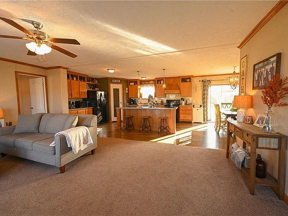 Home for sale with 5.8+\- ac, with shop on 65 Highway Just North of Urbana directly across from Skyline School. Manufactured home was built in 2017, has approx. 2052 sq ft of finished living area and is permanently affixed to the concrete foundation. 4 bedrooms, 2 bath, with a great open floor plan. There are 2 living rooms, the kitchen has lots of very nice cabinets, pantry, eat in bar and all kitchen appliances stay with the home, (No built-in microwave) the main bedroom is very large with a bathroom and large walk-in closet. The main bath has a sunken tub, shower, and dual vanity. Bedrooms have nice walk-in closets. The home has been meticulously taken care of and is in excellent shape just waiting for you to move in. The back deck is amazing as it over looks your oasis, even has a gazebo and a new above ground pool. Property is located in Hickory County, Skyline Schools, 2022 taxes approx. $919.00 home has a private well with 5-year-old pump and septic. Washer and dryer do not stay with the home.