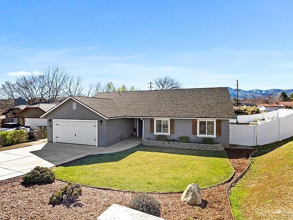 Welcome to this charming, well maintained and upgraded three bedroom two bath home in the West Golden Hills Community. Walk-in to an open concept living space with vaulted ceilings, views from living room to kitchen and dining space creating a cohesive and cozy space to enjoy with family and friends. Newly upgraded primary bath with a large soaking tub, accent shiplap wall with upgraded mirrors and lighting. The primary bedroom also features a vaulted ceiling, giving a large open feel. All flooring has been upgraded to include tile in both bathrooms and laundry room, LVP throughout living space and carpet in all bedrooms. Step outside to a backyard retreat with a fully covered patio, built-in BBQ island, fire pit, raised garden beds and privacy fencing with mountain views. Don't miss your opportunity to call this place home!