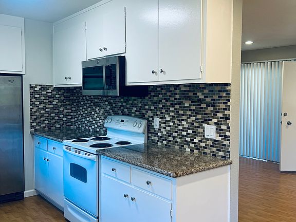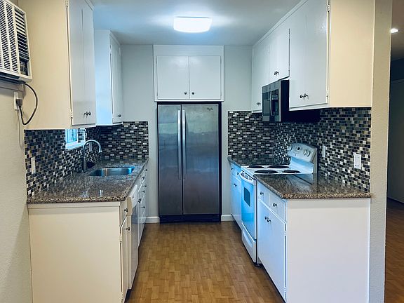 Situated in a well-maintained complex with beautiful grounds 2 Bedroom 2 Baths $2695 per month Kitchen includes electric stove, refrigerator, dishwasher and microwave, laminate floors, central heating and AC, good sized patio at rear of unit