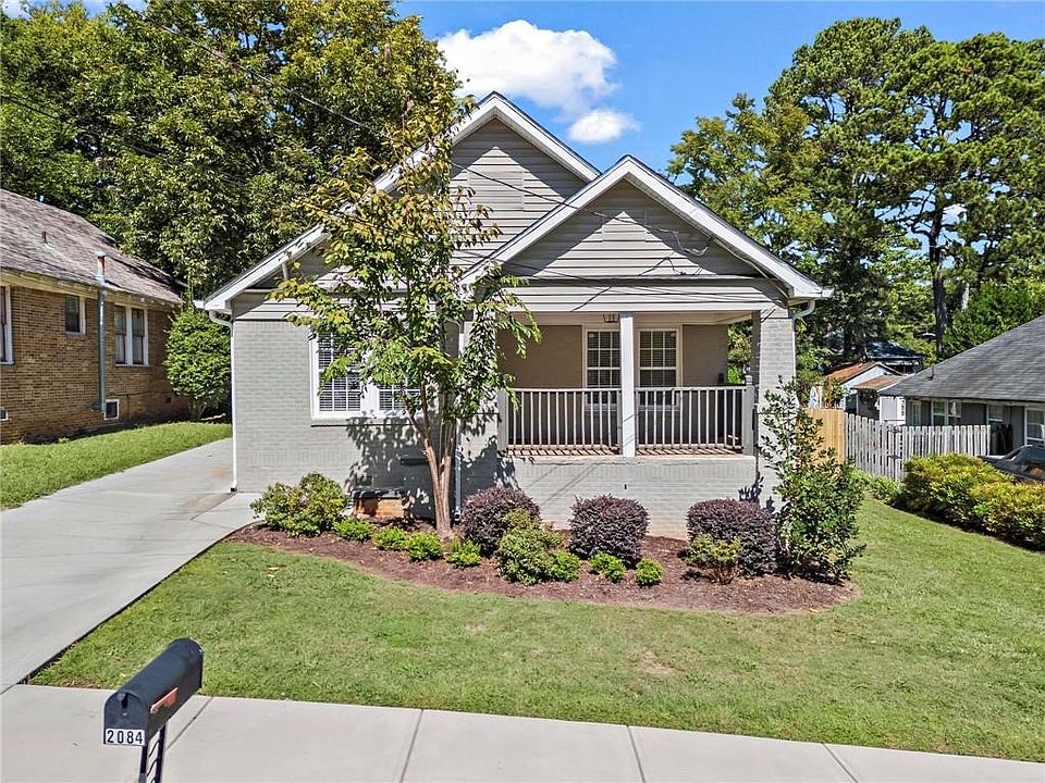Charm abounds in this picture perfect 1930’s Kirkwood bungalow! You will be hard pressed to find another home that matches this level of turn-key goodness paired with historic style and walkable fun. Approach the covered front porch where you’ll greet friends, enjoy morning coffee, and receive Amazon packages without fear of rain damage. Inside, the dark stained hardwood floors and high ceilings convey old world appeal while the custom built-in cabinets flanking the (decorative) fireplace merge style and function. What about all this natural light?! The front gathering room is sure to delight everyone who crosses that front door threshold. Not to be outdone, the dining room has been coated with trendy sage green paint and is wrapped in a heavy trim package, top to bottom. Forever the center of the home, this large kitchen will impress any professional chef or UberEats connoisseur. Quartz countertops, stainless steel appliances, freshly painted white shaker style cabinets and a large pantry check all the right boxes. Off the hallway, the guest bedroom features amazing corner light overlooking the front gardens with a nice sized closet. The hall bathroom will welcome any visitor for a quick reprieve with its fun paint color, cute tile work, and glorious natural light from the privacy window. The primary suite is a sanctuary on the back of the home with two walk-in closets outfitted by California Closet Co. and a large, lavish en-suite bathroom with oversized shower and dual vanities. But wait, there’s more! Need a nursery? Or perhaps a home office? There is a cute bonus room behind the kitchen that lends itself to endless options! At over 1,600 square feet, this comfortable bungalow lives so much larger than it appears. The level backyard is ripe for fresh plantings and creative vision! Refurbish the detached garage into luxury car storage or maybe an artist’s studio or ADU for grandma, the choice is yours! If you know Kirkwood, you know this location is simply unmatched. Steps from all of the fun events, festivals, and playground at Kirkwood’s renowned community hub, Bessie Branham Park. Or follow the sidewalk to Kirkwood Village, boasting neighborhood favorites like Taproom Coffee, El Myriachi tex-mex, Evergreen Butcher + Baker, and The Argonaut seafood restaurant. A short bike ride to the Atlanta Beltline via the Eastside Trolley Trail would make for an ideal weekend jaunt. Hurry home to 2084 Dunwoody Street, where life is good and living is easy!