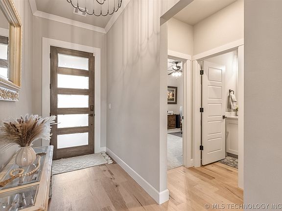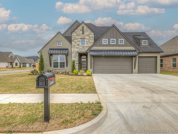 Fantastic single story home in Bixby's Torrey Lakes Subdivision! This home is better than new as it already has a fully fenced back yard and blinds in all the bedrooms. This home sits on a great corner lot at the front of a culdesac and is just a couple blocks away from the NEIGHBORHOOD POOL and PLAY GROUND! You will love the FLEXIBLE FLOOR PLAN! On one side of the home you have the lovely primary bedroom with vaulted ceiling that opens up to the gorgeous primary bathroom that is connected to the laundry room. On the other side of the home you have bedrooms 2 and 3 that are connected by a pullman bath. The 4th bedroom is large and sits at the back of the house and would make a great playroom, media room or office! Kitchen has gorgeous countertops, white oak island, and large black silgranit sink! Drop zone when entering through the garage! Located less than 2 miles from the highly sought after Bixby West Elementary and Intermediate!