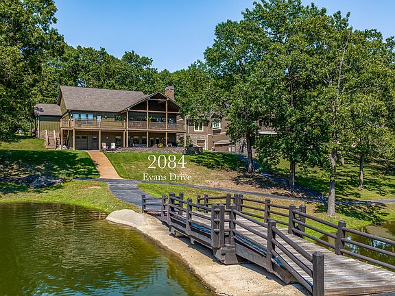 The Lodges at Melody Point, charming craftsman style home, beautiful floor plan, one of a kind open living design, perfect for entertaining friends and family. Living area features gas log rock fireplace, wood floors, dining area between the living an kitchen, access to upper deck with covered and open areas overlooking the ponds. Light and bright kitchen, island work space with bar seating. Master suite on the main level, wall of glass, deck access, private bath features dbl vanity, whirlpool tub, shower and huge walk in closet. Also featured on the main level are 2 guest bedrooms with full bath. Lower level family room offers fireplace, media area, kitchen with bar height seating, dining area, guest bedroom #4 with full bath. Price includes boat slip is 12'x28', HOA $457.00 monthly
