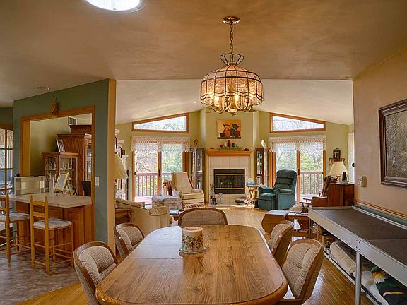 Grand home on wooded lot close to pool and east gate. On entry from the yard side you are welcomed into a wonderfully open and naturally lighted space that extends all the way into the very large living room. Those who need wheelchair assistance are able to use the lift in the garage. The open floor plan kitchen / dinning area adjoins the living room and the space is welcome and inviting. There are three bedrooms on the main level, all with extra wide doors. The master bedroom has an en-suite bath (with sunken jet tub ) and walk in closet. Skylight tubes all through the house for maximum light. The living room has vaulted ceilings and a gas fireplace. Windowscaping and sliders all around. The walkout level is equally huge and has a second kitchen, family room, dining area and three sleeping areas ( two non-conforming). This level also has a full bath and large storage area. AC is less than 5 years old. 80 gal water heater. Hardwoods, carpets, tile and Swanstone surfaces.