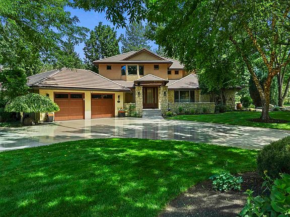 Exclusive Boise riverfront estate located in the gated community, "The Island at River Run" Perfect view of the Boise river, waterfall & nature trail Biking & walking distance to restaurants, downtown Boise, foothills, golf course & Botanical Garden. Mature manicured landscaping, north facing outdoor living on large paver patio's. Gourmet kitchen features Wolf professional gas stove top w/ double ovens & top of the line appliances. Kitchen & dining open to the great room with walls of windows bringing in all the natural light & scenic river views! Spa like primary suite with two walk-in closets, double vanities, soaker tub, large walk-in shower w/ rain shower head and body sprays! Large bonus room w/ access to the mudroom complete with dishwasher, sink & wine refrigerator! Bose speakers throughout! Bonus room behind garage can be converted back to a 3 or 4 car garage. dual zoned HVAC system. Community tennis & pickle ball courts, pool, hot tub and private greenbelt access. This is a rare waterfall view lot!