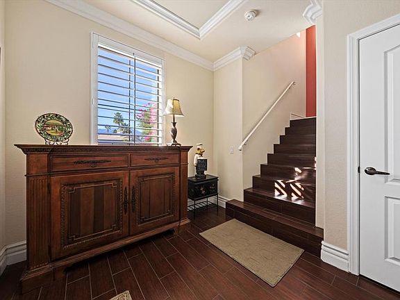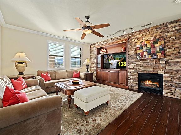 Major Price reduction! This fully furnished home in Brava is absolutely stunning! The open and efficient layout is 1,961 square feet and consists of 3 bedrooms, 2 bathrooms, and an additional office area with a built-in desk. There are also 2 covered balconies, one off the kitchen and the other off the primary bedroom. The updated kitchen has stunning slab granite countertops, modern glass tile backsplash, stainless steel appliances, island with eating area, pendant light fixtures, and ample storage. The bathrooms have been done in slab granite countertops and travertine in the showers. Other interior features include tile and wood flooring, built-in media cabinet, stone accent wall, crown molding, and shutters on most of the windows. There's also an attached 2 car garage. This home is nicely furnished and ready to be enjoyed! Brava is gated community with two pools/spas, clubhouse and fitness center. Centrally located close to shopping, dining and more.