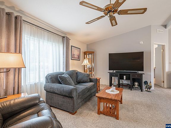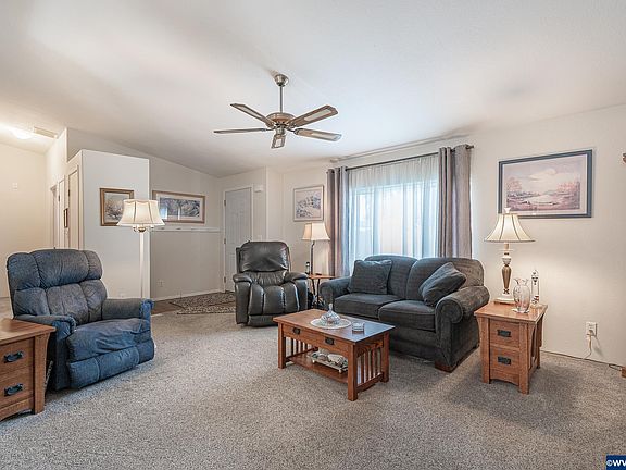 Explore this charming double wide manufactured home in a tranquil Donald neighborhood. Enjoy 3 beds, 2 baths, and a 2-car garage. Beautifully landscaped front yard, and fenced backyard with patio and sunny garden area. This home offers ample storage, vaulted ceilings, and a split bedroom layout for added privacy. The kitchen flows into the living and dining areas, ideal for entertaining. Great parking with a wide driveway and RV pad. Conveniently located near I-5 and just 7 miles from Woodburn Premium Mall.