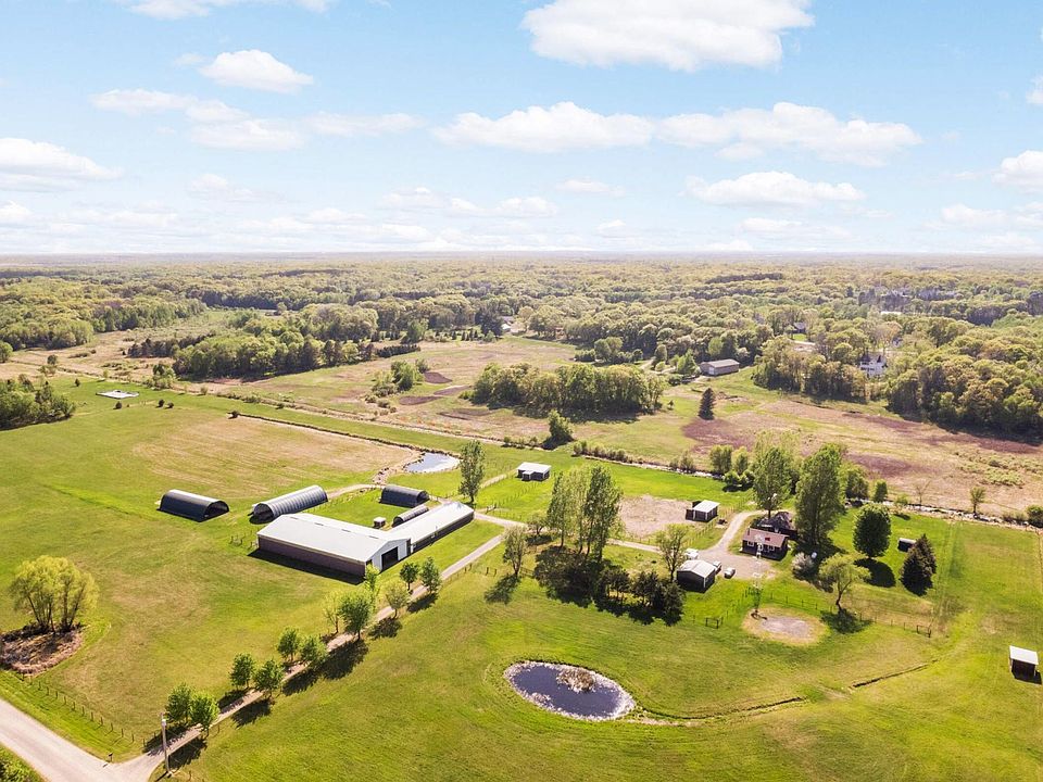 This stunning 30.75-acre Elk River equestrian property is a dream come true for horse enthusiasts and nature lovers alike. With rolling green pastures, turn-key facilities, and a charming home, this one-of-a-kind estate is ready for you to move in and enjoy country living at its finest. The efficient and cozy 2-bedroom, 1-bath home offers an inviting single-level living floorplan with plenty of natural light and recent updates, or build your dream home here and utilize the existing home as an accessory dwelling unit. Equipped for serious equestrians, the property features a spacious horse barn (36x100) with 9+ stalls, wash stall, tack room, and plenty of hay storage, with direct access to the fully-insulated indoor riding arena (126x60) for year-round training. The acres of well-maintained pastures provide plenty of turnout space and high-quality grazing for horses or other livestock. Additionally, multiple Coverall outbuildings provide ideal storage for your hay and equipment needs. For dog lovers or those seeking a multi-use facility, a dedicated dog kennel is also included, making this property ideal for breeding, boarding, or personal use. Located just a short drive to Twin Cities amenities, this property offers the best of both worlds. Whether you're an equestrian professional or simply looking for a private escape, this farm is a rare find. Don't miss the opportunity to own this exceptional slice of paradise!
